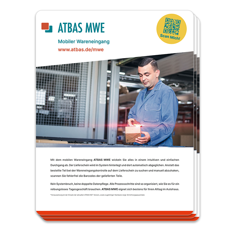 Mit dem mobilen Wareneingang ATBAS MWE wickeln Sie Ihren Wareneingang in einem intuitiven und einfachen Durchgang ab.Kein Systembruch, keine doppelte Datenpflege. Die MWE App selbst wird ATBAS Kunden lizenzgebührenfrei zur Verfügung gestellt*.